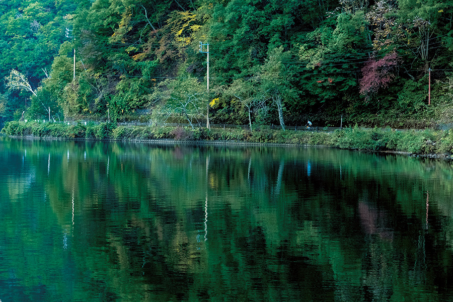 仁科三湖のなかで最も南に位置し、最初に登場する木崎湖。澄んだ湖面が広がり、清涼な空気が漂う湖畔エリアは、ここまでの景観とは雰囲気が変わり、いいアクセントになる。四季折々の景観が楽しめる木崎湖には年間を通じ多くの客が訪れる