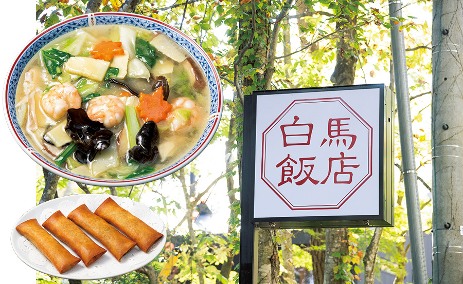 閑静な別荘街にあり、宿やパン屋も展開。上/旨味たっぷりスープにプリプリ海老が乗る海老ソバ 下/人気のパリパリ春巻き