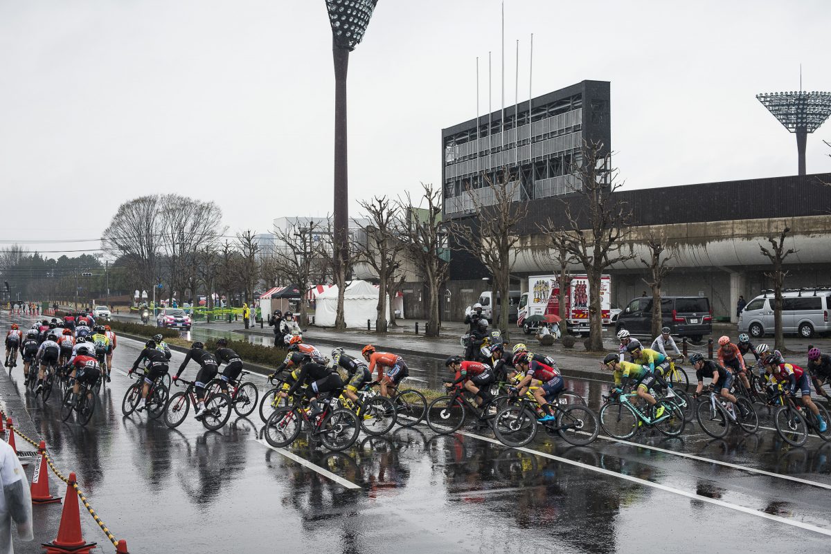 三菱地所JCLロードレースツアー2021の開幕2連戦の2日目、「カンセキ宇都宮清原クリテリウム」が3月28日、栃木県宇都宮市清原工業団地の特設公道周回コースで行われた。T字を横に伸ばした形の2.3kmコースは、2箇所の直角コーナー、3箇所の180度コーナーがあり、選手は23周回50.6kmの間、100以上のコーナーでストップ&ゴーを繰り返す。