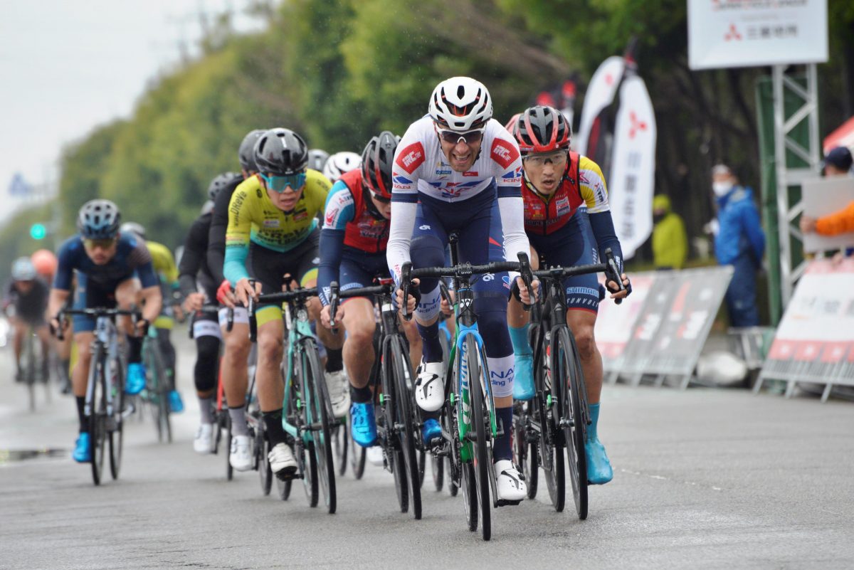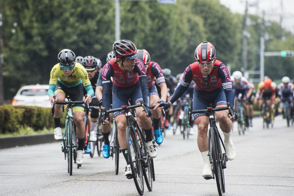 有力なスプリンターのいないチームは、先行して少人数に持ち込みたいところ。キナンサイクリングチームが積極的だが、集団はなかなか逃げを許さない。中盤9周目、鈴木龍(レバンテフジ静岡)の単独アタックにキナンは山本元喜・大喜の兄弟がそろって合流。得意の展開へと持ち込みにかかる。ここへさらに小坂光(宇都宮ブリッツェン)、宇賀隆貴(チーム右京 相模原)が合流。先頭は5人のグループになった。