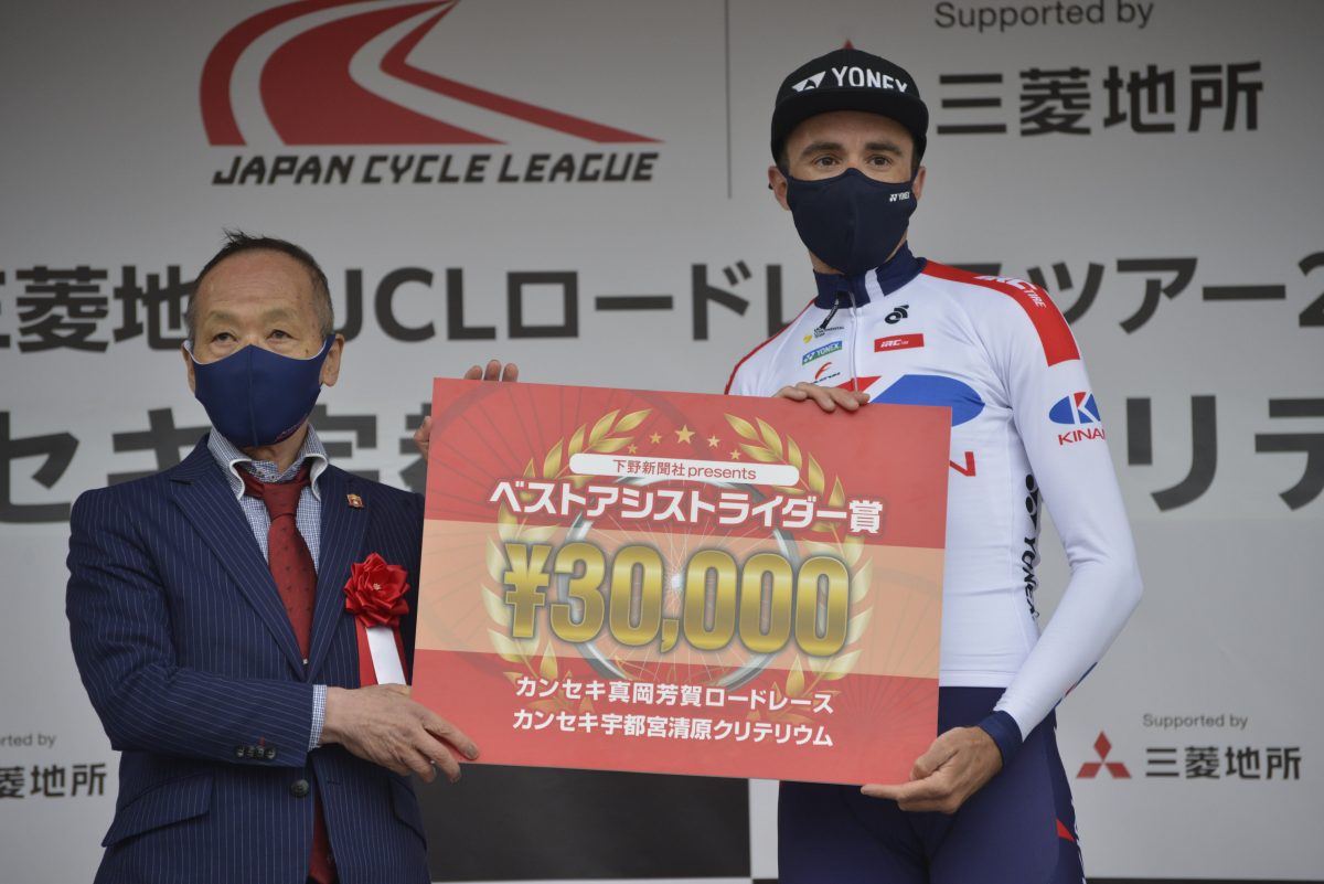 小野寺に勝ってほしかったので、少しずつスプリントの方に流れを持っていって、手繰り寄せていけたのが良かったと思います。最後は自分の余力を計算して先頭を引きました。思いのほか序盤から後半までずっと激しい展開だったので、(ライバルは)みんな脚も消耗していたのかなというところもありますし、その中でうまく動けたというのは、自分の調子が良い証拠だなと感じました。リーダージャージは守るということは全く考えてなく、これにあまり固執してしまうとチームのための走りもできなくなりますし、それでもチーム一丸となって頑張った結果としてこれを着ることになって、それはそれで嬉しく思っています。自分たちはこの結果に満足せず、次のレースまで期間が空きますが、プラスに捉えてより厳しいトレーニングを積んで、またチーム皆で調子を上げていけたらと思います。