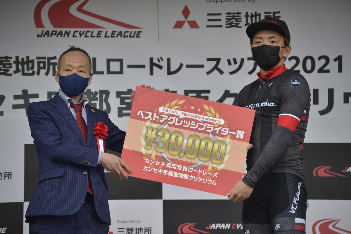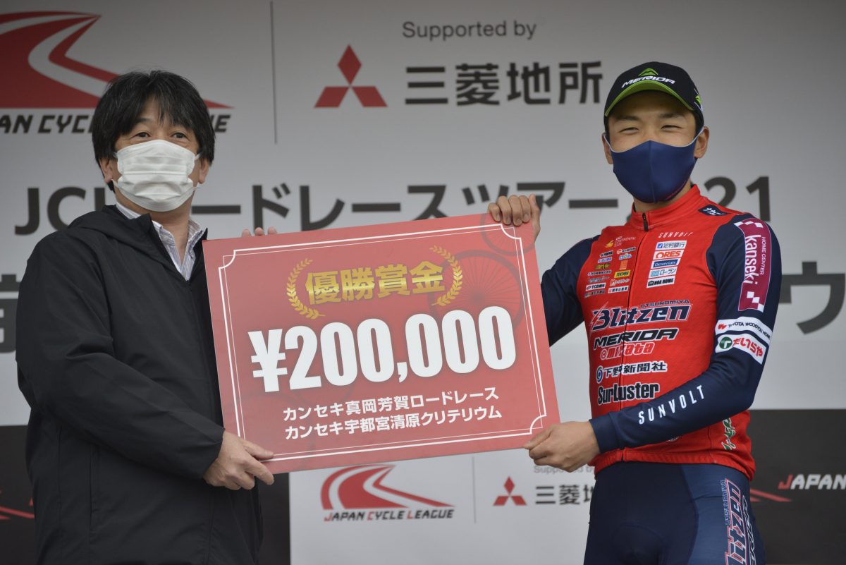 新ロードレースリーグ「三菱地所JCLロードレースツアー2021」の第2戦「カンセキ宇都宮清原クリテリウム」が3月28日(日)に宇都宮市清原工業団地の公道で開催され、ホームチームとなる宇都宮ブリッツェンの小野寺玲選手が勝利。さらに宇都宮ブリッツェンは前日の「カンセキ真岡芳賀ロードレース大会」で増田成幸選手が勝利しており、チームとしての2連勝となった。