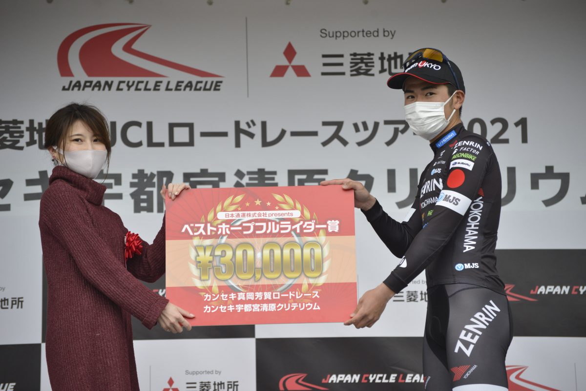 僕はスプリンターではないので、チームのスプリンターを第一に、僕はあわよくば逃げで勝ち逃げに入りたいと後半動きました。新人賞と言っても結局(順位では)表彰台に上っていないので、次こそ入賞して表彰台が目標です。10年近くトライアスロンをずっとやっていて、今も日体大のトライアスロン部で、去年は国体にも出させてもらっています。去年チームに声をかけてもらい、自分に向いているなら何でもチャレンジしてみようとやっています。