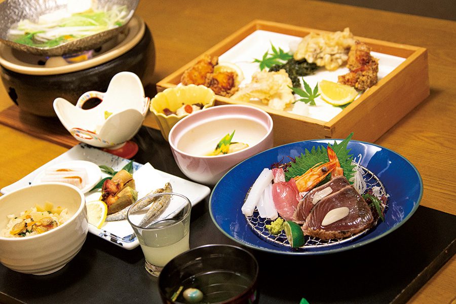 宿毛湾が一望できる高台に立ち、絶景の展望風呂、宿毛の新鮮な海・山の幸が並ぶ食事が人気。「サイクリストにやさしい宿」