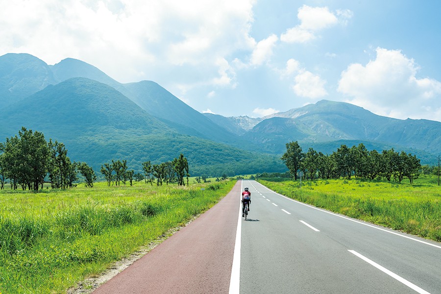 クルマ、二輪にも人気の道とあって、適度な立ち寄りスポットがあり、良質の温泉地も点在している。宿をとり、ゆったりと楽しむのもオススメだ。健脚なら、より近くに草原を感じられるミルクロードに入り、阿蘇駅にゴールするフルコース的な走り方を選んでもいいだろう。