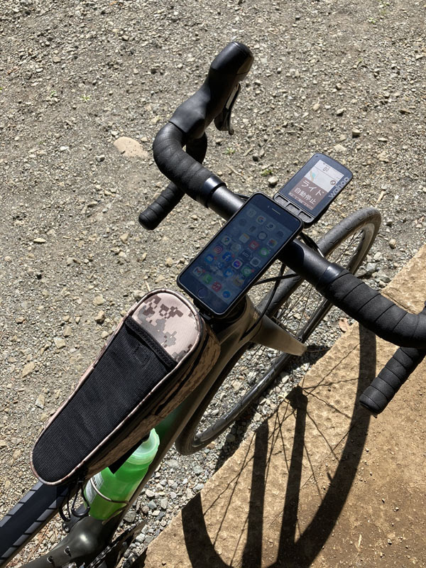 エアロマウントプロはスピードを求めるライダー向けのデザイン。市場で最も軽い、わずか5gのカーボン強化プラスチックのスマートフォンマウント。 3M社製の強力な両面テープでステムの平らな面に固定し、補助的にステムの周りにゴムリングを装着。前後非対称の形状により、前寄りもしくは後ろ寄りを選んでスマートフォンをセット可能。エアロマウントにスマートフォンをセットして単独で、もしくはアウトフロントマウントに取り付けられたサイクルコンピューターと同時にセットも可能。 同梱のWahoo またはGarminアダプターをエアロマウントにセットすればサイコンマウントとしての使用も可能。何も取り付けないときには付属のエアロキャップを装着すると見た目がスマートに。