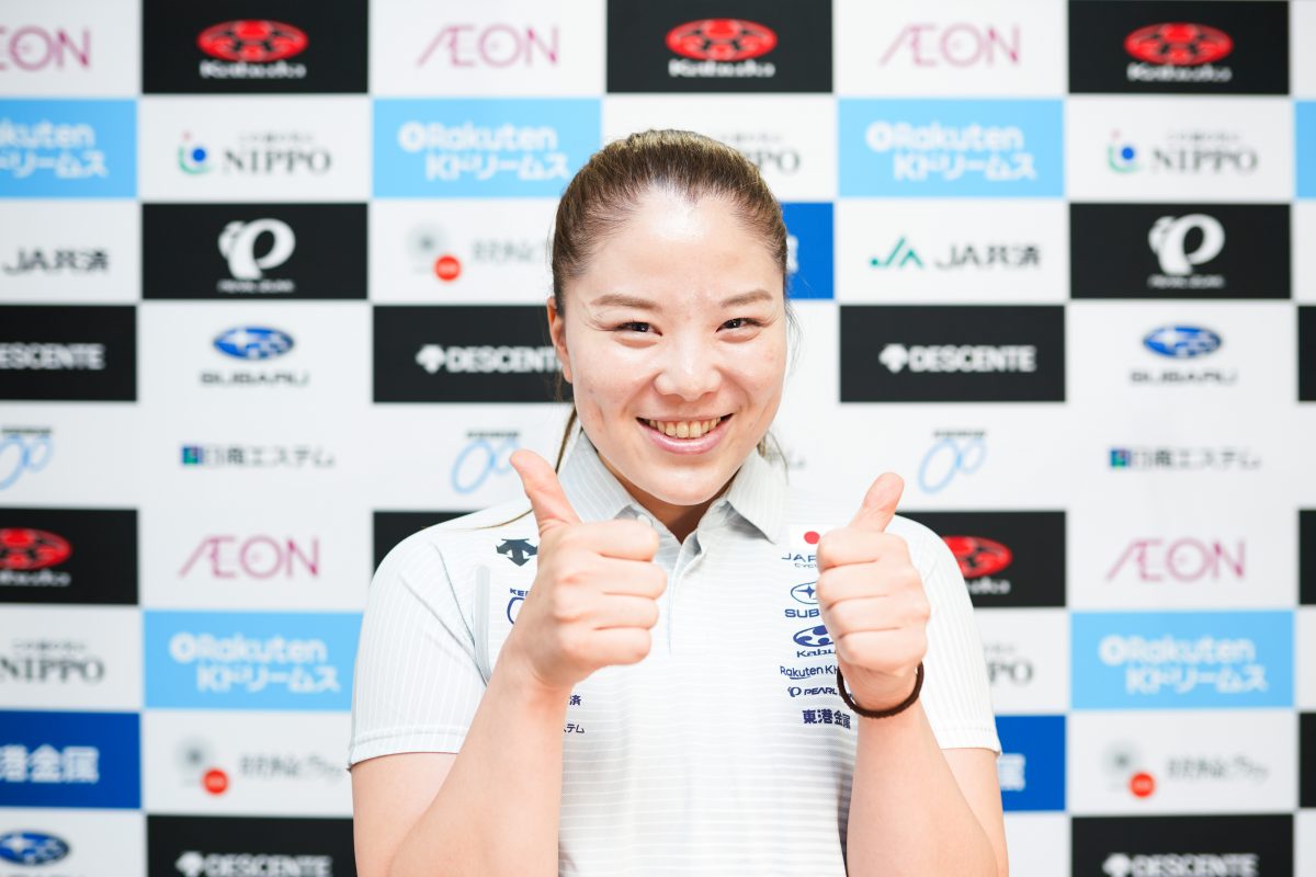「この一年間、私の長所であるスピード持久力を磨いて、短所であるダッシュ力も強化して、全体で進化できたと思います。ネイションズカップではケイリンで優勝できたことを、自分の中では大きく評価したい。(2019年ケイリン世界女王の)リー・ウェイスィー選手と戦えて、そのホームバンクで優勝できたことは、東京オリンピックに向けてもう一段階上に行くために、必然だったと思います。私は自転車をスタートしたときから公言しているとおり、オリンピックのケイリンで金メダルを獲ることを目標としています。東京オリンピックのケイリンでメダルを取ることが自分の中では最優先事項なので、もっとスキルアップしていきたい。ケイリンで金メダルを獲るように、頑張ります!(マッスルポーズ)」
