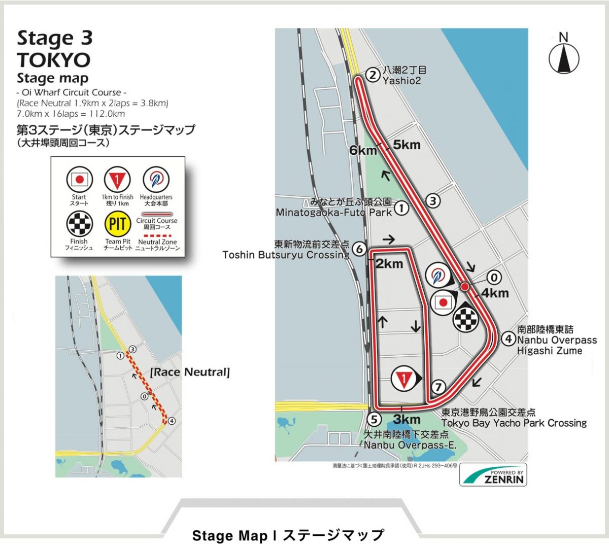 大井埠頭メイン会場は天候によって海からの強い風に影響されるが、ド平坦の周回コースであり、レースの平均速度は時に50km/hに近くに達することもある。メイン会場前がスタート・フィニッシュ地点となり、総合表彰式は、メイン会場内特設ステージで行われる。