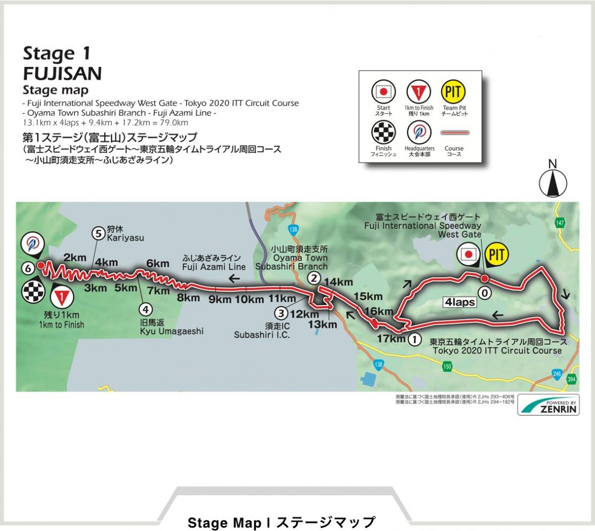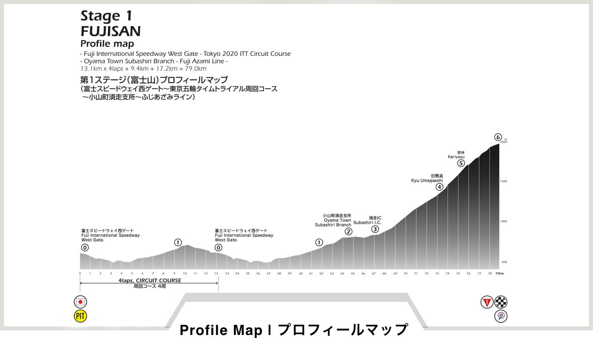 2021年に開催される東京五輪自転車ロードレースのフィニッシュ会場に決まった「富士スピードウェイ」の西ゲートをリアルスタートし、東京五輪タイムトライアルの周回コースを4周半してから過酷極まりない「ふじあざみライン」の山頂フィニッシュへと向かう。「ふじあざみライン」の上りセクションは全長11.4km、標高差1,160m、、平均勾配10%、最大勾配22%と、世界最大の自転車ロードレース「ツール・ド・フランス」に登場する「ラルプデュエス」を上回るプロフィールを持つ名物コース。スタートから3km地点まではストレートの上り坂。その後は、山岳道路特有のヘアピンをひたすら上る。また、フィニッシュ地点が従来の「山荘方面」から「須走口五合目第2駐車場前(激坂20%以上)」へ変更されている。