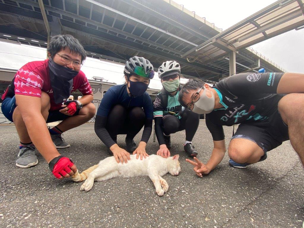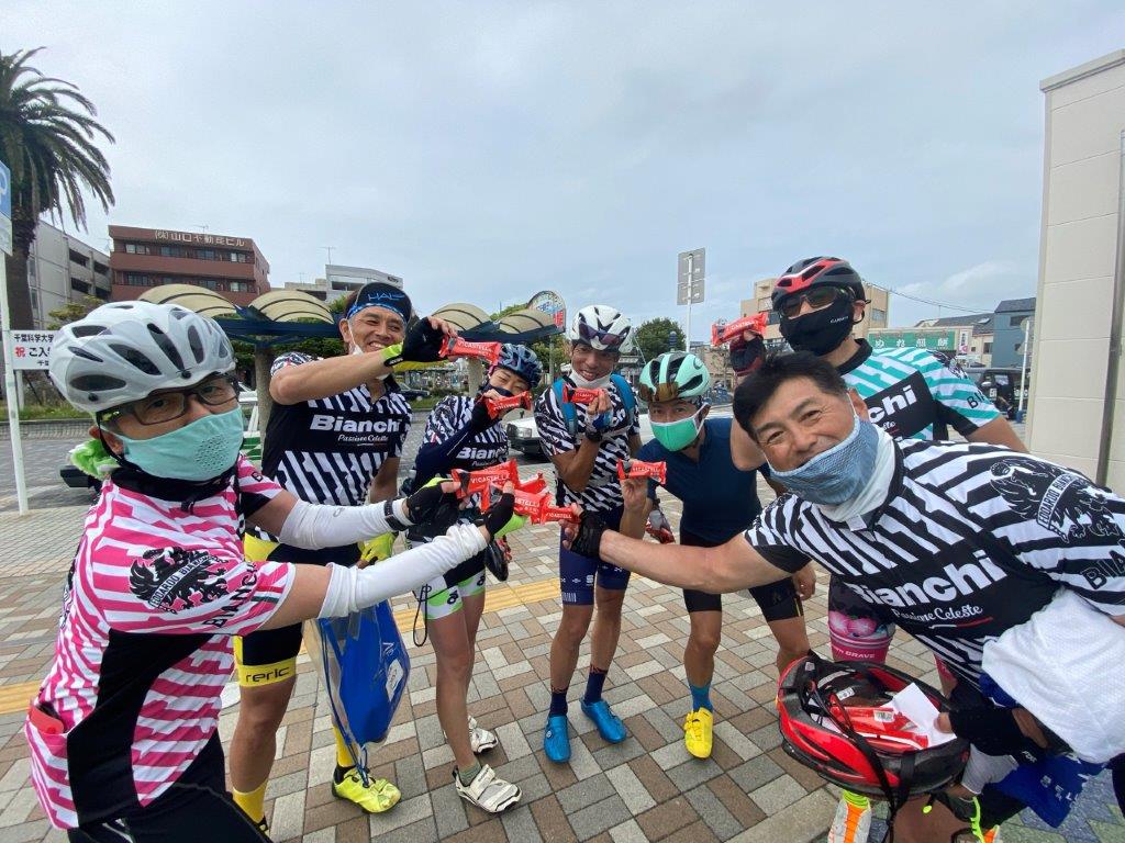今回、青山コーチのトライアスロン仲間がガイドライダーを担当。最後は青山コーチからの文明堂の新製品V!カステラの差し入れ