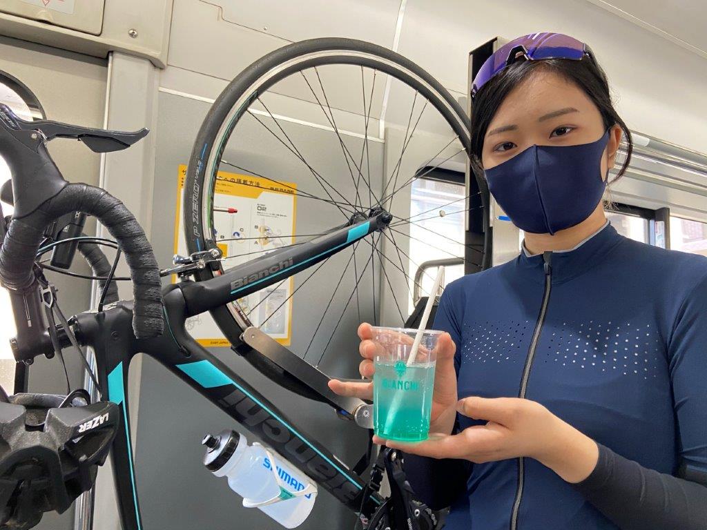自転車ブランド「ビアンキ」が運営するだけに、ツアーの中身もスペシャルな内容だ。ゲストとしてプロトライアスロンコーチの青山剛さんが参加し、列車の中でストレッチをおこなうという通常では味わえない体験が味わえた。