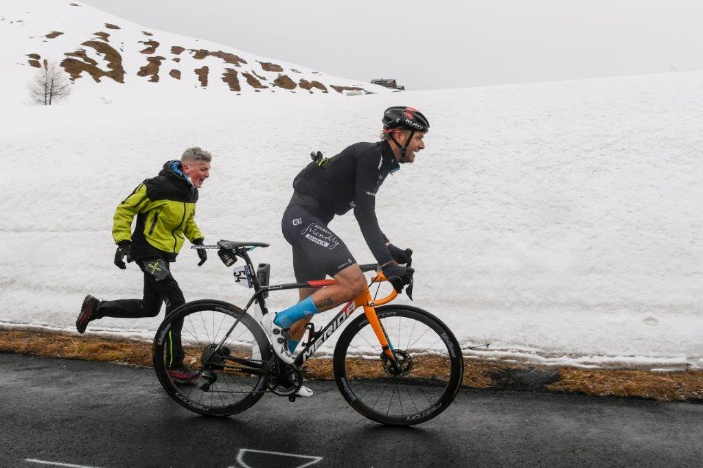 連日2000m級の残雪のなか冷たい雨を受けながら走るジロ・デ・イタリア。新城選手によると最近のウエアの進化で、そこまで寒さを感じずに快適に走ることができるという。では、どんな工夫をして寒さをのりきっているのだろうか?
