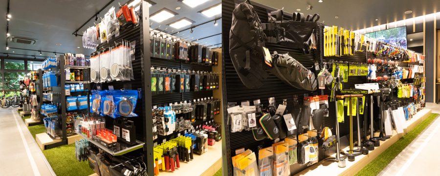 商品の品揃えも中級以上のロードバイクを中心に国内外のスポーツバイクを多数取りそろえる。またカスタマイズするためのパーツを厳選して揃えるほか、バイクのコンディションを維持するためのケミカル類も充実している。