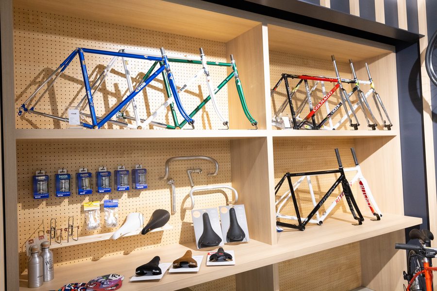 トラディショナルなスチールフレームの品揃えも豊富。フレームセットから組み上げるパーツも充実している。