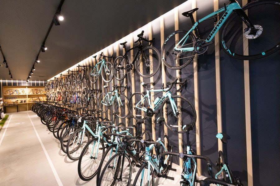 中級以上のロードバイクを中心にジャイアントやメリダ、デローザ、コルナゴ、ビアンキ、3Tなど人気のブランドが揃う。