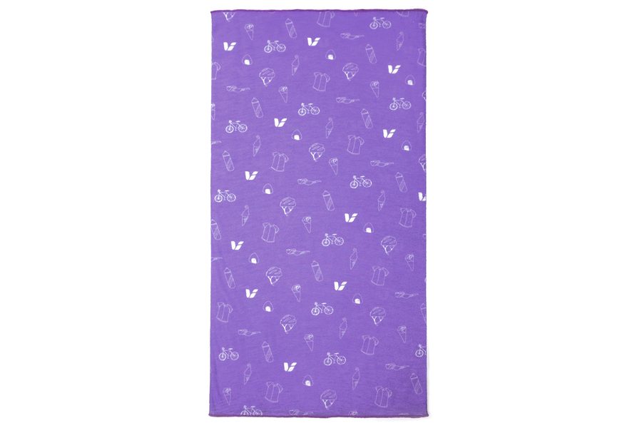 ヘルメットやボトル、アイス、クレープなどライドに欠かせないアイテムを散りばめたポップなデザインのマルチパーパスヘッドウェア