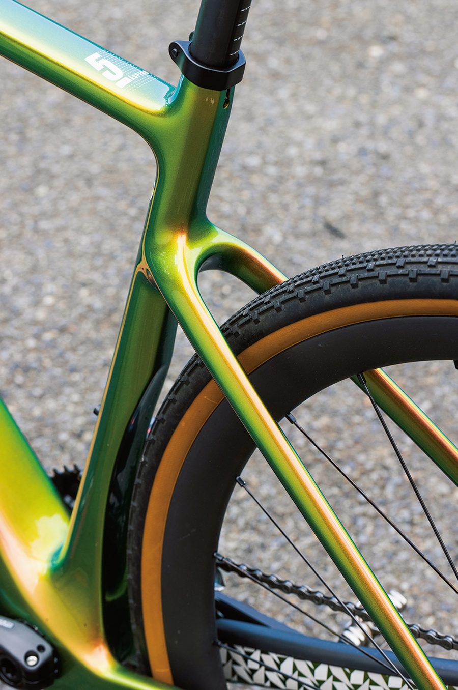 またリアセンターの長さがそれほど長くなく、サドルの真下にタイヤが位置しているので、荷重がかけやすくしっかりとトラクションをかけてペダリングしていける。すべてがグラベルでの速さを追求したバイクといえる。
