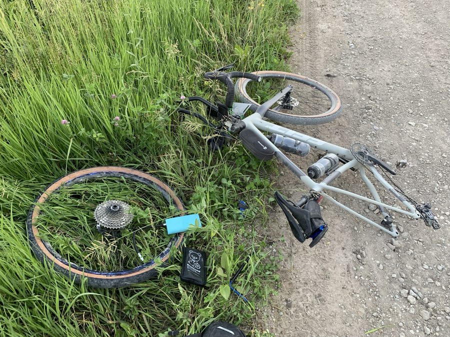 自分がパンクする前にも既に何人かの選手がパンク修理をしていたので、何も珍しいことではありません。パンクへの準備はしてきたのと、自分のペースで走ったほうがいいんじゃないか?とポジティブに考えていたので「これぞUNBOUD GRAVELの洗礼ダネ!」みたいな笑顔でサムズアップされても、ちっとも怒りが湧いてきませんでした。