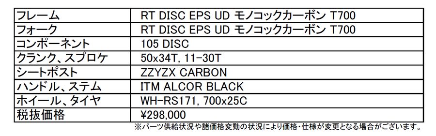 税抜価格:205,000円(シマノ・105)、185,000円(シマノ・ティアグラ)
