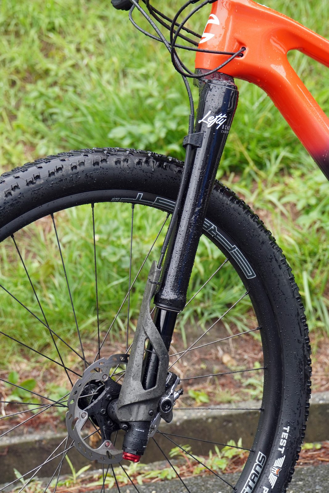 ヘッド角の変更に合わせて55mmオフセットとなったレフティ・オチョ・カーボン