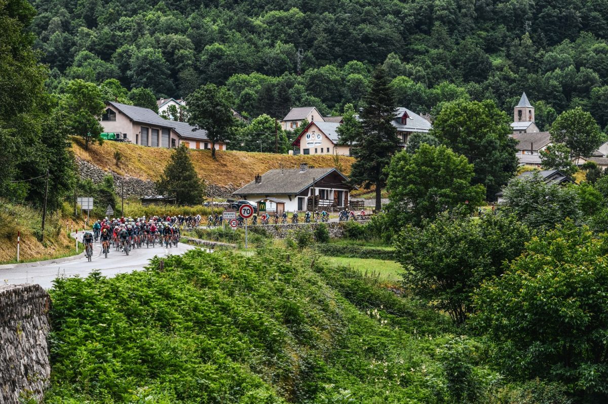 第2週最終日の第15ステージでは、ピレネー山脈の小国アンドラにフィニッシュしたプロトン。そのまま同国で2回目の休息日を過ごして、来る大会最終週を迎えた。この日は、同国のフランス国境側の街パス・ダ・ラ・カザをスタート。ニュートラル区間でフランスに戻ると、長い下りを経てリアルスタート。コースは断続的に2級、1級、2級とカテゴリー山岳を越えていくが、3つ目に上るコル・ド・ポルテ・ダスペ(登坂距離5.4km、平均勾配7.1%)は頂上に近づくにつれて勾配が急になっていくのが特徴。その後の下りも10%を超える傾斜とあって、この区間で仕掛ける選手がでるのでは、といった予想が多かった。さらには、雨が降り続き、気温も15度いくかどうかの寒さ。ロードコンディションはウエットである点も、レースをより難しくしている。