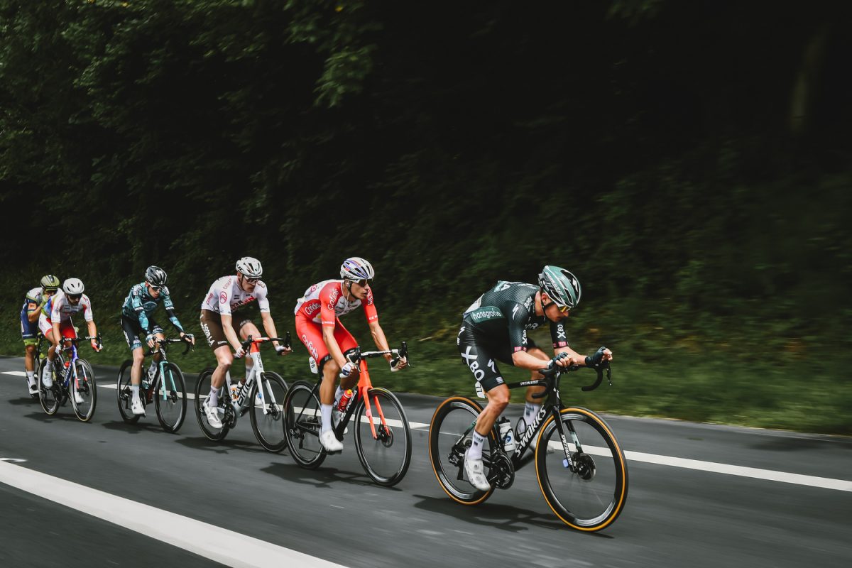 先頭は6人のまま1つ目の上りとなるペイルスルードへ。態勢が乱れることなく進み、ここはデュルジスが1位で通過。メイン集団では、山岳賞を争うワウト・プールス(バーレーン・ヴィクトリアス、オランダ)やナイロ・キンタナ(チーム アルケア・サムシック、コロンビア)がペースを上げるが、これを追ったピエール・ラトゥール(チーム トタルエナジーズ、フランス)がやがて前に出て、単独で追走を開始。ただ、これも長くは続かず、集団へと戻されている。