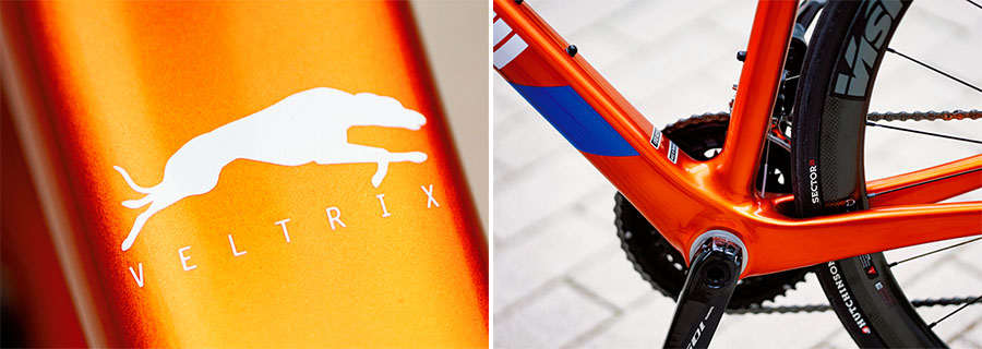 らしさのあるフレームデザインとエレガントなペイント技術が個性的なヴェルトリクス。弾性率の異なる複数のカーボンシートを使い分けつつ、手の届きやすい、プライスを実現する。