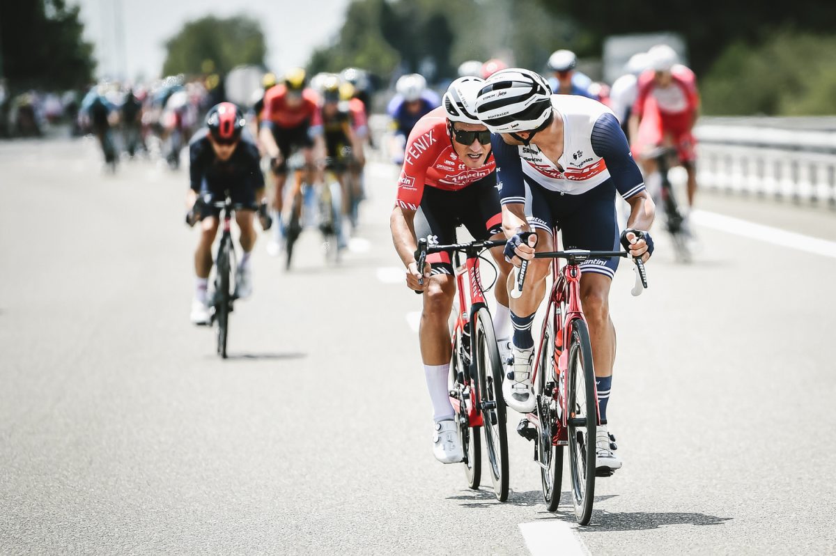 しばらく20人のまま進んだ先頭グループだが、残り36kmでのフランク・ボナムール(B&Bホテルズ KTM、フランス)とヨナス・ルッチ(EFエデュケーション・NIPPO、ドイツ)のアタックで、ステージ優勝を賭けた争いが幕開け。アタックとキャッチの繰り返しが長く続いたが、残り25kmで決定打が生まれる。