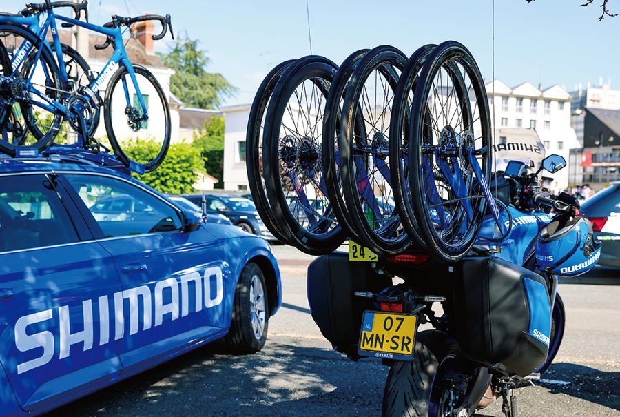 ASO主催レースのニュートラルサポートを行う「SHIMANO(シマノ)」