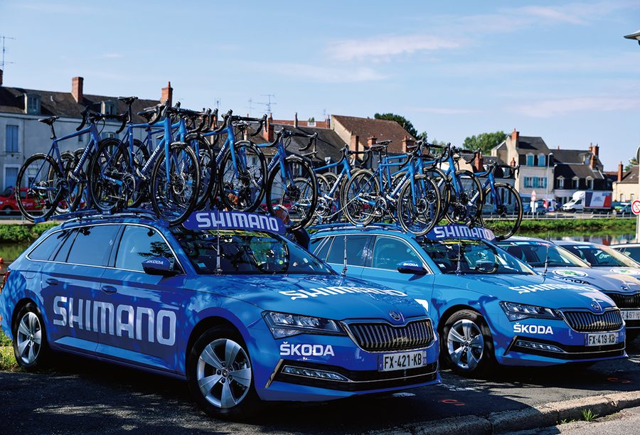 プロトンに「シマノブルー」が加わった。前年度よりも少しだけ濃度を落とした青いシュコダのステーションワゴンとヤマハのモーターバイクが、ツール・ド・フランスのプロトンとともにフランスを文字どおり駆けまわっている。
