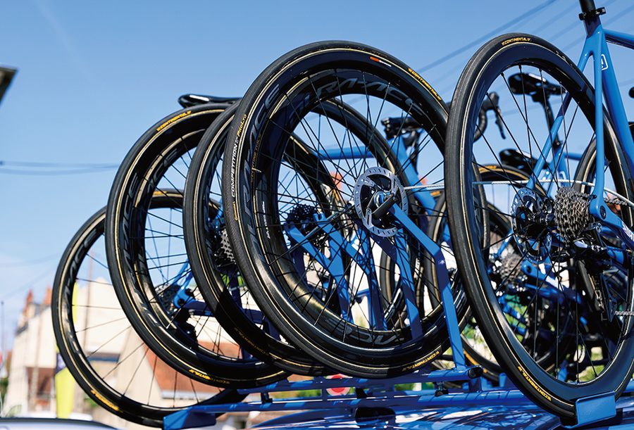 レースシーンになくてはならない存在のニュートラルサポート。今年から「シマノブルー」がレースを陰で支えている。