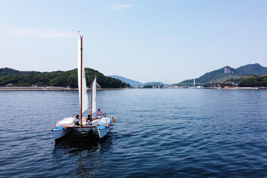 移住後、弓削大橋のふもとに停泊している、瀬戸内海最大級のカタマランヨットを管理することになったサムさんは、外国人観光客を対象としたクルージングツアー「Kaze Yacht Charter」をスタートしましたが、コロナ禍で海外からの集客が見込めなくなってしまいました。
