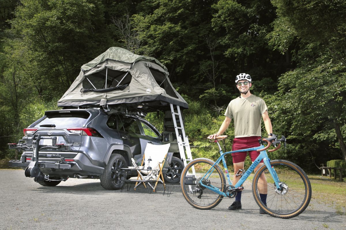最近注目をあつめている車中泊。ここに自転車を組み合わせて、クルマを拠点にサイクリングを楽しもうという提案だ。けんたさんのルーフトップを使ったスタイルから、モデルの山下晃和さんのジムニー×自転車、さらにワンボックスを使ったレース応援スタイルなど、具体的な車中泊の例を紹介する。