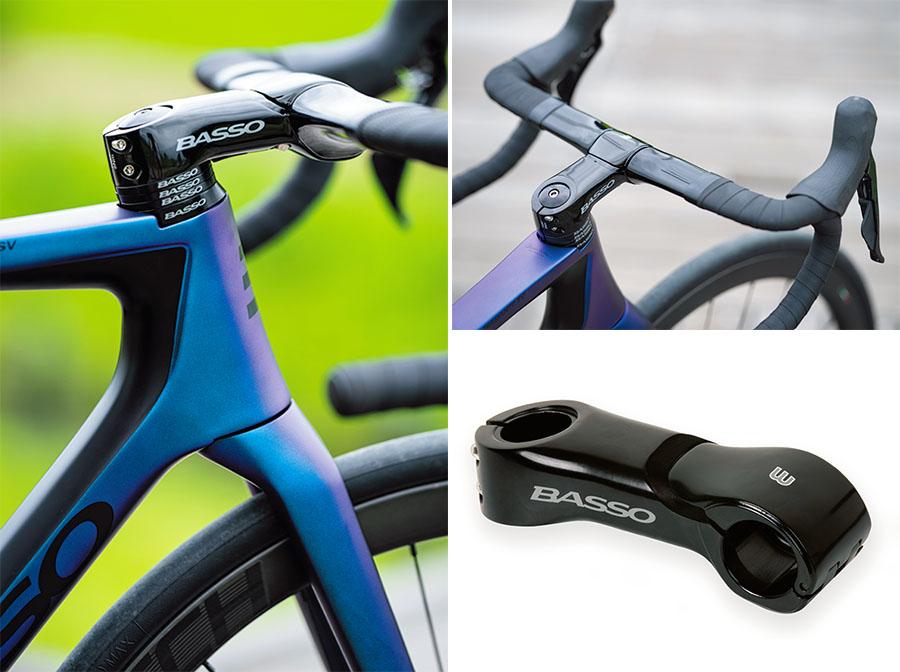 専用ステムとスペーサーを採用し、フルインターナルケーブルルーティングを実現。いっぽうで、ハンドル角度やステム高を幅広く調整可能で、レーシングからコンフォートポジションまでセッティングできる