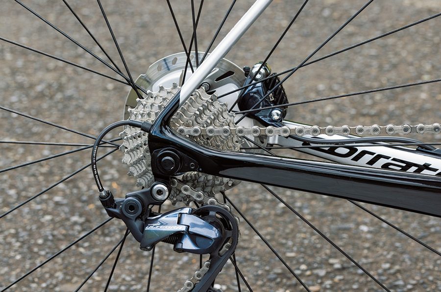 リアディレーラーのケーブルは、チェーンステー内部を直線的に取りまわすルートに変更。フリクションロスを軽減しストレスのない変速を可能にする