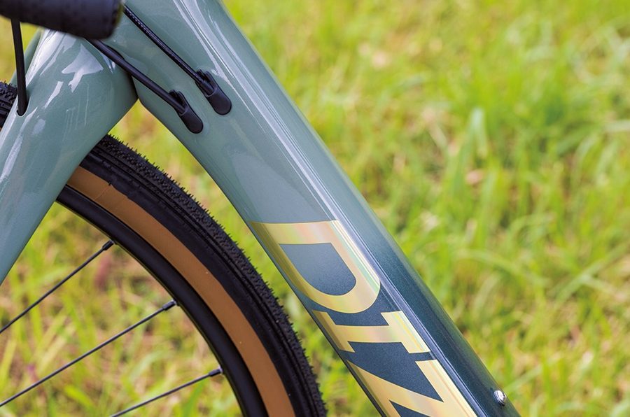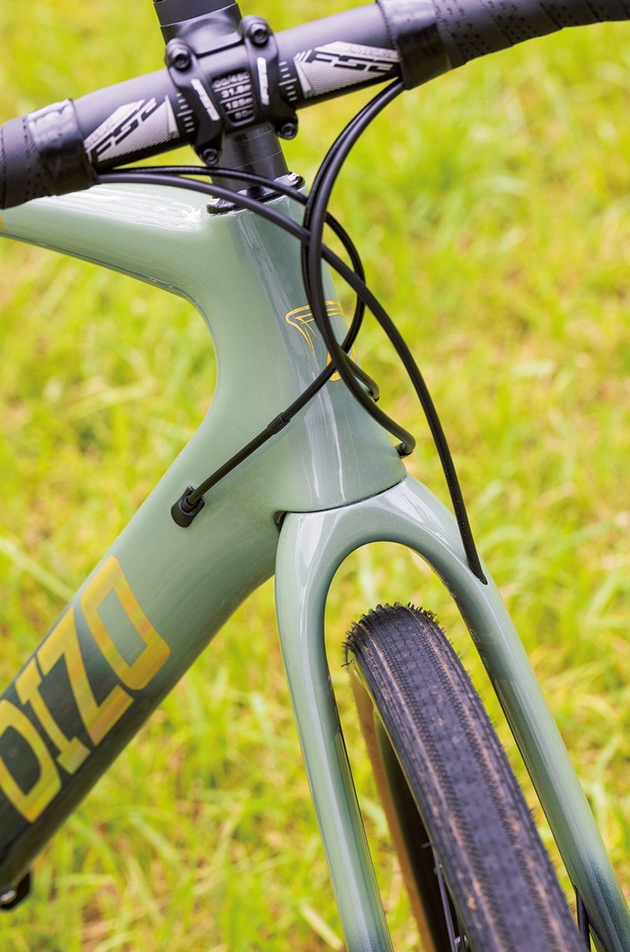 グローバーはディゾ初のグラベルロードとして誕生したモデルだ。振動吸収性とペダリングの反応性を両立したフレームには東レのT800高弾性カーボンを採用。ホイールベースを長めに設定して、グラベルから舗装路まで安定した乗り味を実現した。