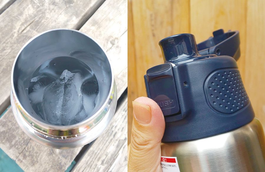 左/大口なので氷を入れやすい 右/開閉ボタンとロックボタンが一体化。ワンタッチで操作できるようになった