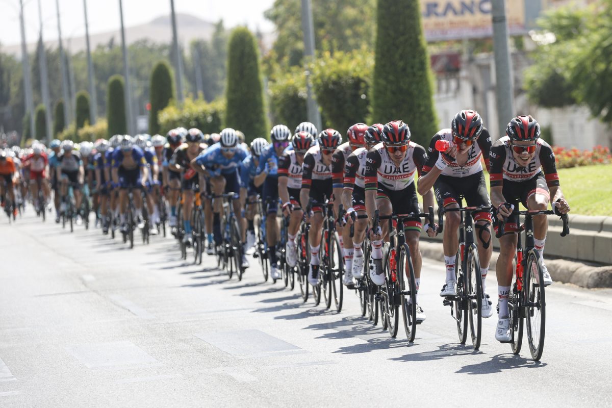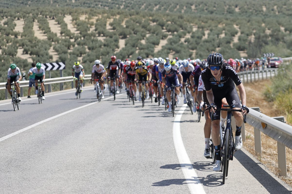 残り100kmを切ってプロトンはさらに活性化。アタックとキャッチが繰り返される中、残り84kmでようやく8人の逃げが決まる。ただ、メイン集団はこの逃げを完全に容認したわけではなく、2分以内のタイム差を保ったまま進行。こうした状況で、一度コルドバを抜けて迎えた3級山岳アルト・デ・サン・ヘロニモでリチャル・カラパス(イネオス・グレナディアーズ、エクアドル)がメイン集団から遅れ始めた。