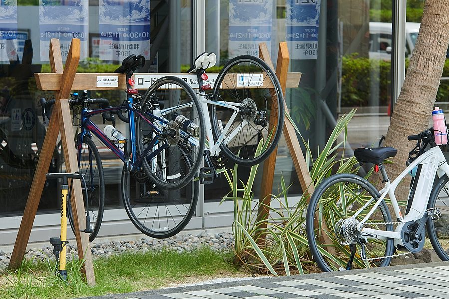 今回のコースはサイクルトレインとなっているJR西日本のきのくに線が並走している区間なので、初サイクリングでも安心。それをふまえてサトさんと私はロードバイク、ニノさんはeバイクをレンタルした。