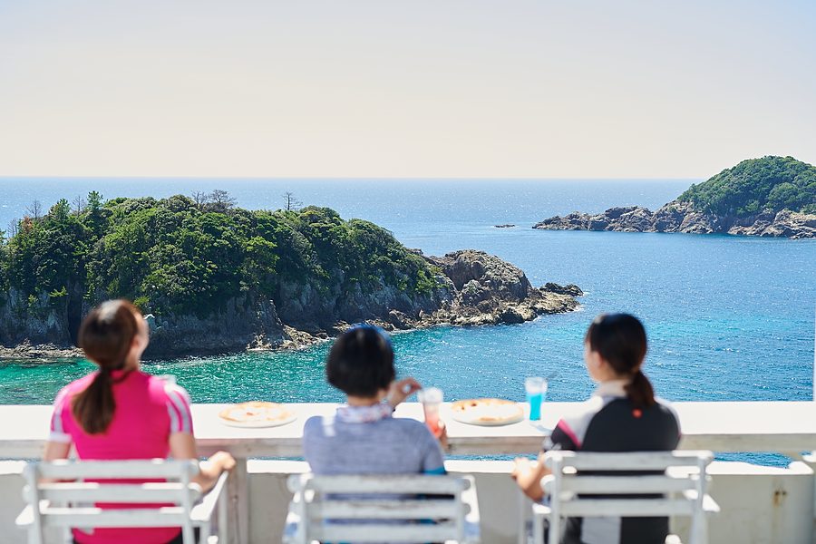 マグロの養殖も盛んな串本町でマグロ丼を食べたあとは、本州最南端潮岬〜紀伊大島をサイクリング。南国のような木々が生え、1日めのライドとはまた違う景色がおもしろい。そしてかなり長くて急な上りがいくつかあり、eバイクのよさを体感(いや痛感か)!