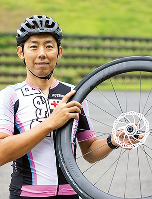 MTBクロスカントリーとシクロクロスの元トップ選手で、現在は自転車店ライズライドの店主。現在愛用の車輪は、クリスキングのハブに手組みしたカーボンリムとマニアックな一面ももつ。