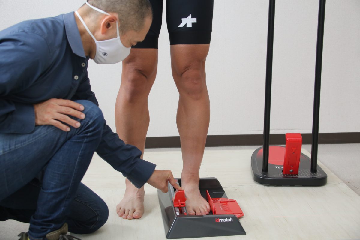 イタリアのサドルメーカー・セライタリアグループのシンクタンク企業として行うフィッティングサービスがIDマッチ。専用の什器で足のサイズや踏み込んだときのひざの動きを計測し、専用ソフトでクリートの取り付け位置の目安を決める「クリートフィット」と、バイク型の什器を使ってサドルの位置やハンドルなどのポジションだけでなくあらゆるブランドのサドルやハンドル各1000種類以上の中からどのモデルがマッチするかという提案までしてくれる「スマートバイク」がある。今回はすべてのフィッティングのベースとなるクリートフィットを体験した。