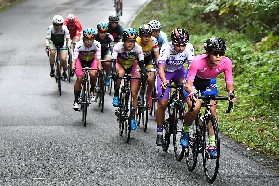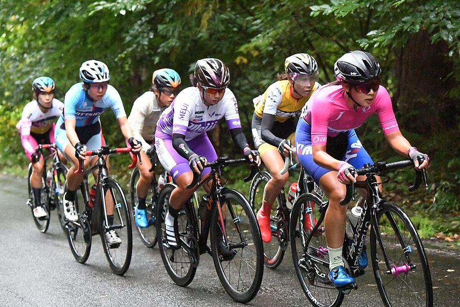 9周54kmで行われた女子のJフェミニンツアーDay2は、序盤から渡部春雅(明治大学)がペースアップして人数を絞っていく。フェミニンリーダージャージの植竹海貴(Y’s Road)が遅れる場面が何度かあったものの、その都度追いつくことを繰り返す。
