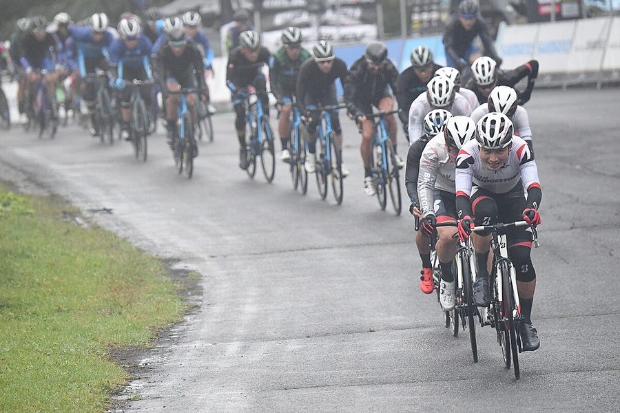 今回のレースは群馬サイクルスポーツセンターの6kmサーキットを逆回りで30周する180km。約半周のローリングの後リアルスタートすると、アタックと吸収を繰り返しながら1周8分30秒前後のハイペースで周回が進む。
