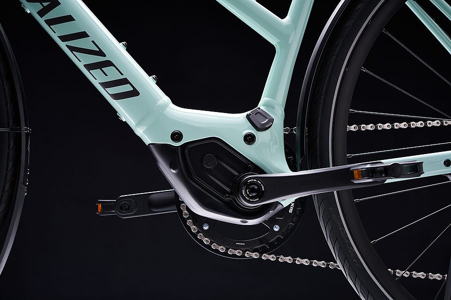 商品名につくSLとはSuper Light、 つまり超軽量の意味で、 平均的なeバイクより40%軽量です。 カリフォルニアでデザインされ、 スイスで設計されたSuper Lightシステムは、 eバイクに理想的な超軽量で高性能のモーターを搭載。 一目見ただけではeバイクとわからないような洗練されたデザインを可能にしました。