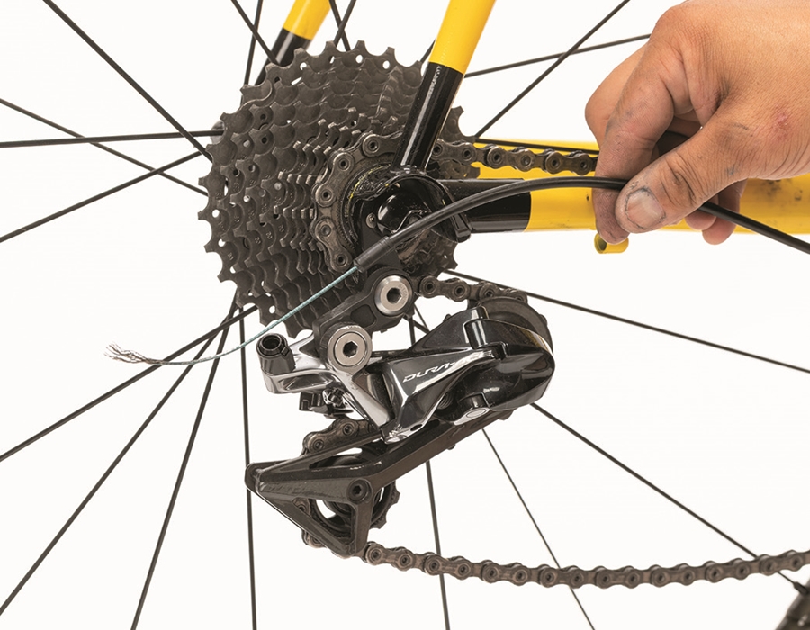 機械式変速機のトラブルの定番といえばケーブル切れだ。フロントならインナーに固定できるが、リアはトップ側に固定されてしまう。走りやすいギヤ比に固定する応急処置で走りきろう。