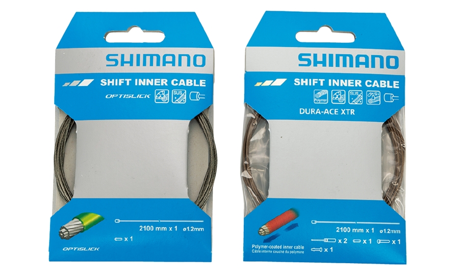 ケーブル(ケーブル)とアウターのセット。アウターも劣化すると変速性能や操作の軽さに影響があるため、定期的に交換しておきたい。