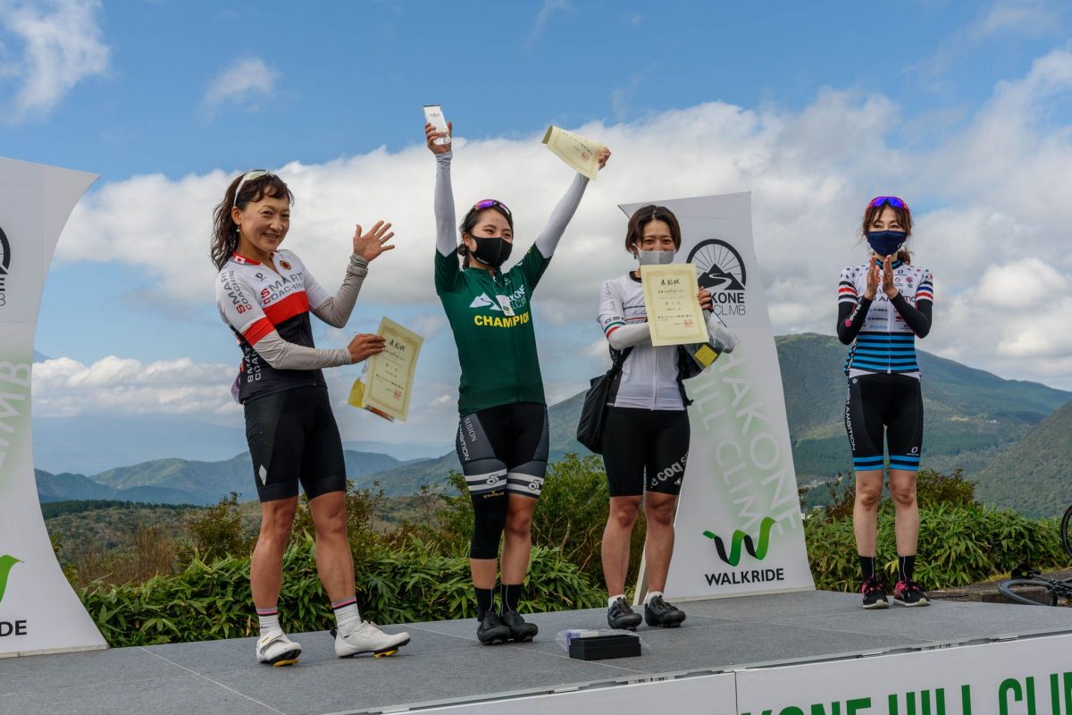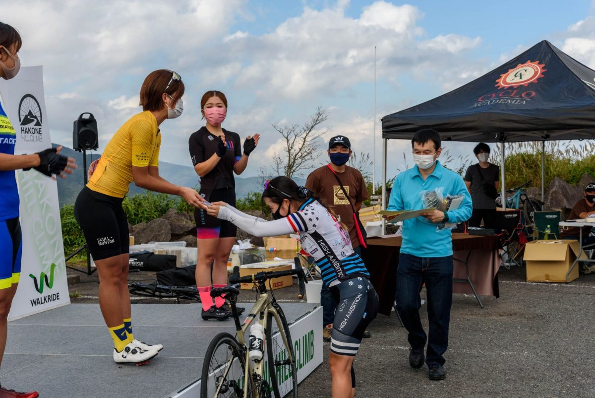 最後の〆は表彰式。僭越ながら私もチームメイトとプレゼンターを務めさせていただきました。さすが表彰台に乗る方々はみなさんカッコよかったです。そして私も女子チャンピオンクラスで優勝したのでチームメイトから表彰していただきました。人生2回目のヒルクライムレースでしたが、とても楽しむことができました。