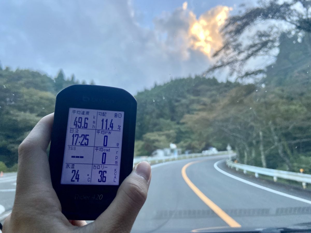 帰り道はアネスト岩田ターンパイク箱根をクルマで試走しました。サイコンを片手に外を見ながら走り、現在地の斜度や残りの距離などを確認。一旦勾配が緩むポイントを知ることができ、自転車で走るのとはやはり違いましたが、参考にはなりました。クルマで試走、他のヒルクライムでも役立ちそうです。