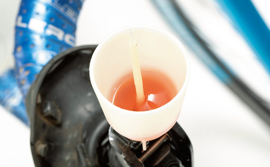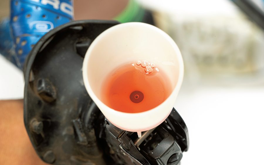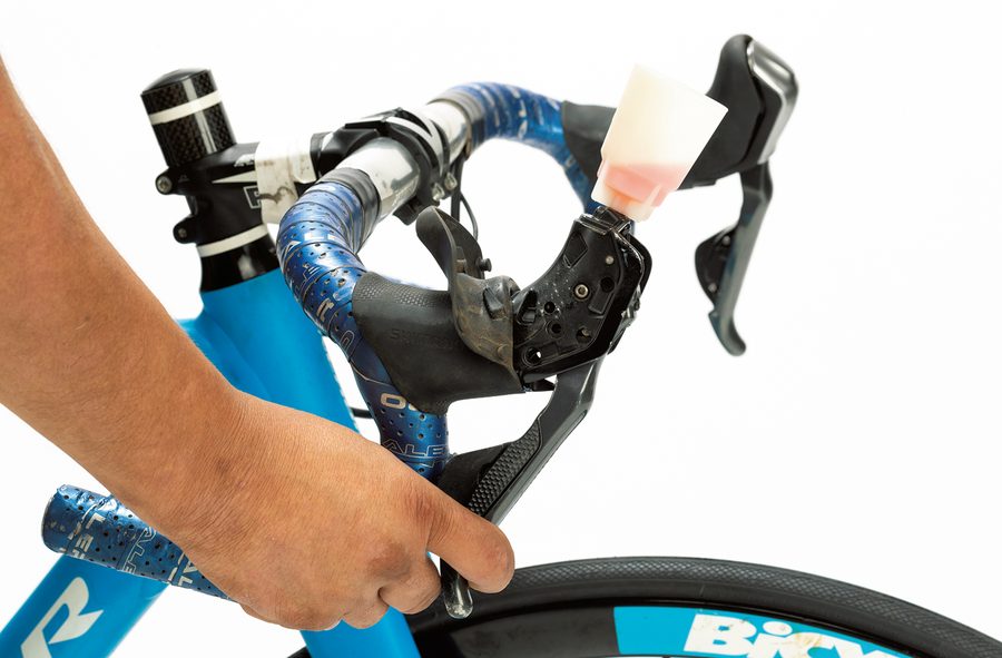 油圧ディスクブレーキでレバーの握りが甘くなり、握り切っても制動しなくなったときは、ブレーキホースなどオイルラインに空気が入っている可能性が高い。そういうときはエア抜き(ブリーディング)が必要だ。一見するとハードルが高そうな作業だが、専用のファンネル(じょうご)を使えば簡単にできる。本来はブレーキキャリパー側からのオイル注入もしたほうがいいが、今回はハンドル側のマスターシリンダー周辺でのエア抜きを紹介する。